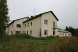 Heinittyneen pellon ja tuuheiden kuusten takana sijaitsi henkilökunnan asuntolana toiminut keltainen rivitalo. Pihassa oli auto ja peräkärry, sisältä kuului ääniä, jotka viittasivat imurointiin tai remontointiin. Tätä taloa kuulutaan käytettävän kesäisin marjanpoimijoiden majoittamiseen, joten kunnossapitotyöt ovat järkeenkäypä selitys äänille. |