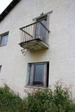 Pienen parvekkeen ovi oli reunustettu seinää vasten olevilla laudoilla, vaikuttaa paikalliselta tavalta. Varustukseen kuului myös palotikkaat. |