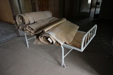 Sitten siirryimme pääovesta sisään. Heti ensimmäisenä vastaan tuli vanha rikkinäinen sänky pahvikuormineen. |
