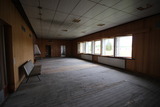 Ruokala/juhlasali oli varsin tyhjä. Jopa lamput oli irrotettu katosta. |