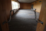 Vanhainkodin ensimmäisen kerroksen huoneet sijaitsivat pitkän ja luonnonvalossa hämärän käytävän varrella. Seinille huoneiden välille oli kiinnitetty puisia tukikaiteita. |