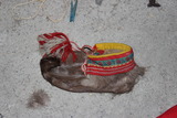 Yksittäinen saamelaisten perinnejalkine lattialla. |