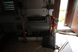 Viereisestä huoneesta löytyi jo osittain ruostumaan päässyt mankeli. |