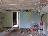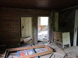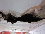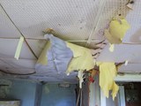 Yläkerran toisen huoneen katon päällysteet olivat rapistuneet jo varsin paljon. |