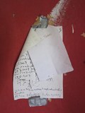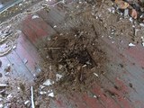 Edellisen kuvan repeämästä lattialle tullut purukasa. |