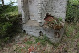 Ainakin osittain tiilestä tehty tulisija toisesta kulmasta. Ulko-ovi roikkui vielä karmissa kiinni. |