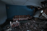 Viimeiseksi kävin makuuhuoneessa, jossa käytöstä poistettu sulaketaulu oli edelleen seinällä. Huomattavin piirre täällä olivat kuitenkin nuo 1970-luvun nojatuolit ja sohva. |