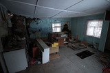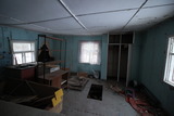 Ensimmäinen sisäkuva. Satunnaisia huonekaluja oli jäljellä jonkin verran, muuten tuvan puoli oli melko tyhjä. |