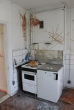 Keittiössä oli tiskiallas ja kaapit paikallaan. |