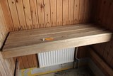Sauna oli hyvin pieni. Sähkökiuas oli toisella seinustalla. |