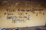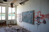 Rapistuva maali teki tämän huoneen seinille omia taideteoksiaan. |