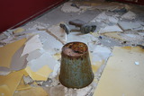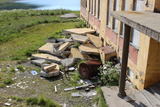 ...ja tässä edellisen kuvan ikkunan alla sijainnut pitimistään riipahtanut lämpöpatteri. Rakennuksessa voisi luulla olleen öljylämmityksen (Nordkappin alueelta on aika vaikeaa löytää polttopuuta). |