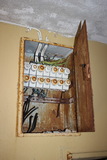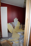 Katosta oli jo muutama eristyslevy pudonnut alas. |