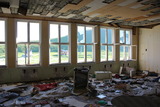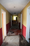 Sitten siirryimme avonaisesta oviaukosta sisätiloihin, onneksi sisäänkäynti oli avoin. Johtuen ensimmäisen kerroksen osalta vaneroiduista ikkunoista valaistuksessa oli eri huoneiden välillä suuria eroja. |