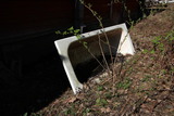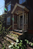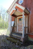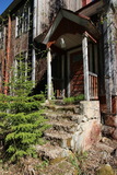 Takaseinustan puoleinen sisäänkäynti, jonka rappusten eteen oli jo ehtinyt kasvaa piskuinen kuusi. |