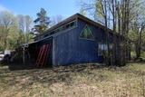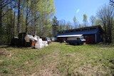 Ulkorakennus ja ulkosalle varastoitua romua. |