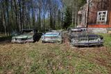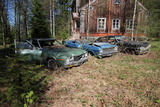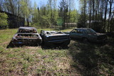 Hylättyjen autojen bongaajille mieluinen löytö: kolme hieman rusikoitua amerikanautoa. |