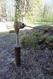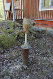 Koulurakennuksen päädyn takana, kuvausaikaan varjoisassa paikassa, sijaitsi tämä vanha pumppukaivo. Kokeilin pumpata sitä sillä tuloksella, että muutama litra vettä tuli ulos. Kuitenkin pian tuon jälkeen kaivon (vettä antavat) voimat ehtyivät. |
