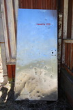 Ihmettelin jo kuvaushetkellä, miten tämä oletettavasti entinen navetan ovi oli tälle paikalle päätynyt. |