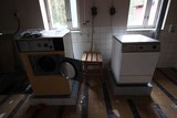 Sitten saavuin pyykkitupaan, tässä pesukone ja kuivausrumpu. |