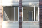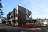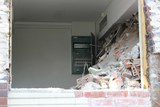 Tässä vaiheessa ikkunalasit oli jo poistettu, mutta muuten rakennus oli julkisivun puolelta vielä kutakuinkin entisellään. |
