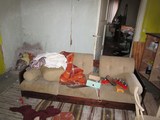 Olohuoneessa jo vähän huonekalut kaatuilleet. |