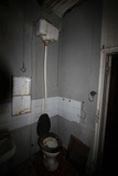WC oli hyvin vanhaa mallia. Korkealla olleesta säiliöstä huuhteluvesi on virrannut pönttöön paineella pelkän painovoiman vaikutuksesta. |