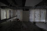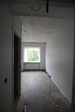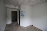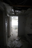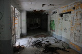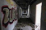 Käytävän lattialla vallitsi sekasotku ja maalikin on seinältä valokuvauksellisesti rapistunut. |