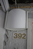 Tämä seinävalaisin näytti omaan silmääni jo kuvaushetkellä langattoman verkon reitittimeltä. Mutta eihän se tietenkään voinut olla se, koska hotellitoiminta päättyi jo 1990-luvun alussa. |