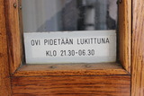 Tyypilliseen tapaan ovi on pidetty lukossa yöaikaan tämän sairaalan toiminnan päivinä. Kuvaushetkellä ovi oli lukossa ihan koko ajan. |
