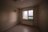 Kyllä tämäkin tila vaikutti kovasti toimistohuoneelta. Saattoi hyvinkin olla, että varsinaisiin entisiin potilashuoneisiin en päässyt ollenkaan lukituista väliovista johtuen. |