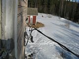Sähköjohto oli ainakin vielä paikallaan, taustalla näkyy ulkorakennus. |