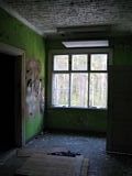 Rappioromanttinen kuva huoneesta jossa oli vihreät tapetit. |
