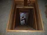 Sitten kellariin. Siellä oli pimeää mutta toimivan taskulampun kanssa siellä pystyi liikkumaan. Kellari oli melko sokkeloisen oloinen. |