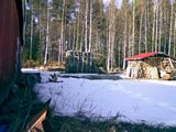 Rakennus sijaitsi melkeinpä keskellä metsää, ja pihamaalla sai olla rauhassa. Sisäänpääsy sijaitsi toisessa päädyssä. |
