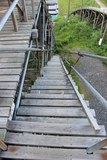 Portaissa oli kaiteet, mutta muutama askelma puuttui. |