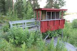 Toiseksi suurimman hyppyrimäen vieressä ollut tuomarikatos. Rappiotilassa näyttää olevan. |