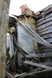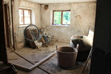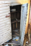 Lisää asuinrakennuksen varsin sotkuisia sisätiloja. Vasemmassa laidassa näkyy todella vanhan jääkaapin kulma... |