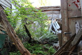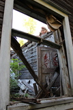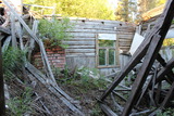 Sitten tutkimaan asuinrakennuksen romahtaneita sisätiloja. Sisällä alkoivat jo puskat kasvaa. |