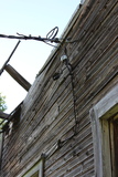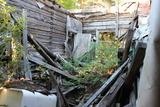 Aloitin kuvaamisen päärakennuksen takapuolelta. Jo tässä vaiheessa kävi ilmeiseksi, että katto oli jo ehtinyt romahtaa sisään. |