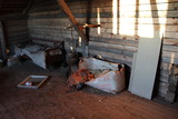 Viimeisenä kävin tutkimassa aitan sisätilat. Tässä yläkerran huone pyykkinaruilla(?) varustettuna. |