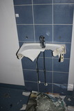 Ilkivallan kohteeksi joutuneet peili ja lavuaari. |