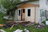 Sitten viime vierailun talon ulkomuoto oli jo vähän muuttunut: kuisti oli irrotettu paikaltaan. |