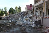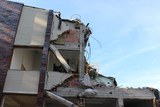 Tässä vaiheessa ikkunalasit oli jo poistettu, mutta muuten rakennus oli julkisivun puolelta vielä kutakuinkin entisellään. |