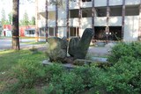 Kivimonumentti oli paikallaan kuvanottohetkellä ja on itse asiassa vielä tätä kirjoitettaessakin (syyskuu 2014). Sitä ei jostain syystä purettu kunnantalon myötä. |
