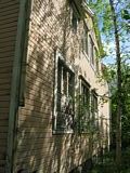 Ikkunoiden peittämisessä oli sovellettu sekä lautoja että vaneria. |