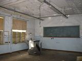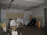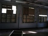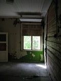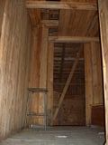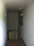 Sisäkuva, oviaukon jälkeen oli muutaman metrin pudotus alempana olevaan romukasaan. |