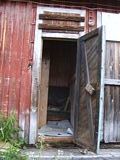 Ulkorakennuksen ovi oli jätetty auki. Sisällä on sotkettu paikkoja. |