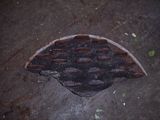 ...jonka lattialla oli tämä, haljennut ja väärinpäin käännetty lieden levy. |