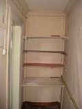 Pieni komero hyllyineen tarjosi kätevää säilytystilaa. |